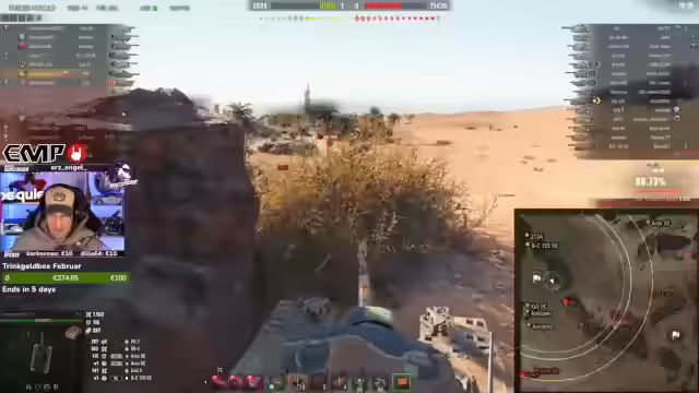 05:20:12Der Streamer fährt fort und spricht über spezifische Herausforderungen im Spiel. Er beschreibt eine Runde als sehr bescheiden, in der sein K1 Panzer unter Disrespekt litt. Ein weiteres Thema ist die Frage nach der Einführung von Tauschaktionen für überschüssige Erfahrungspunkte auf Panzern, wobei er eine zukünftige Implementation, aber ohne konkreten Zeitplan, vermutet. Währenddessen werden im Chat wiederholt Unterstützer erwähnt und mit einem 'Dir' bedankt, was die aktive Community zeigt. Es kommt auch zur humorvollen Selbstreflexion über den eigenen Spielstil und die manchmal frustrierenden Spielzüge.