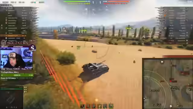 04:11:45Der Streamer konzentriert sich auf das Erfüllen von Missionen im Spiel World of Tanks, wie das Zerstören von Fahrzeugen und das Sammeln von Punkten für die Gunmark. Dabei gibt es kritische Momente, in denen er sich über das Matchmaking und das Verhalten der Gegner beschwert, sowie Situationen, in denen sein Team sichtlich Probleme hat. Trotzdem werden Erfolge wie die dritte Gunmark gefeiert und weitere Drops angekündigt.