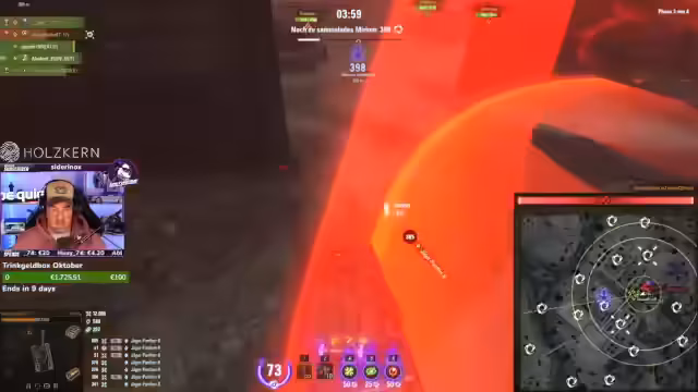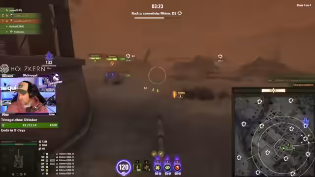 03:27:54Das Gameplay ist von hektischen und stressigen Gefechten geprägt. Der Streamer führt Platoon-Kämpfe und wird von Gegnern verfolgt, was zu intensiven Momenten führt. Er kommuniziert stark mit seinen Teamkameraden, indem er sie auffordert, sich zu heilen, vorzufahren oder bestimmte Ziele anzugreifen. Dabei kommt es oft zu Frustration über das eigene Team, das sich unkoordiniert verhält oder nicht unterstützt, während er selbst in Missionsversuche verwickelt ist, wie das Erreichen von 4500 Schaden an getrackten Zielen.