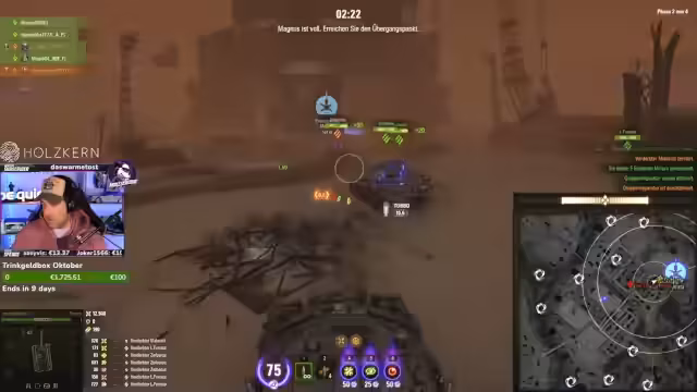 00:02:01Der Streamer konzentriert sich auf das Gameplay im Modus Sperrbereich. Er analysiert die Karte und die Positionierung des Gegners, beschreibt das Vorgehen beim Pushen und das Entfernen von Kranwagen. Es kommt zu hektischen Momenten, bei denen er und sein Team, insbesondere Stan, unter Druck geraten und versuchen, aus schwierigen Situationen herauszukommen. Der Streamer kommentiert den Schaden und die Aktionen im Detail.
