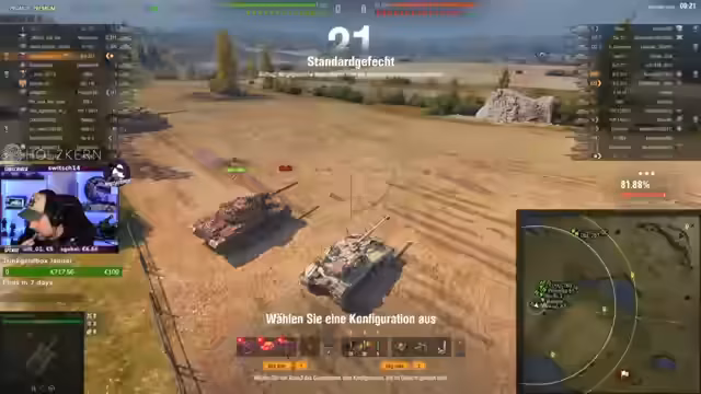 04:11:21Der Stream beginnt mit der Diskussion verschiedener Panzermodelle, insbesondere Waffenträger wie den Steyr WT und den Rheinmetall. Der Kommentator findet den 'Kartoffel' für die 30-Monats-Version besonders gut und wünscht sich, ihn schenken zu können. Bei einem Spiel wird über kritische Situationen gesprochen, wie einen scheinbar schwebenden Turm und Verwirrung über die gegnerischen Aktionen. Ein Spieler erwähnt, dass seine Frau ihn zwingt, das Spiel zu spielen, und sie fühlen sich von RNG betrogen, trotz eines Erfolgs mit dem 'schwarzen Baron'.
