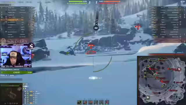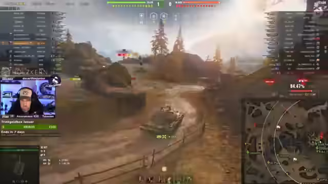 06:53:46Im Verlauf des Streams werden zunehmend schnellere und wendigere Panzer wie der EBR im Eiszeitmodus eingesetzt. Der Fokus liegt auf Drift-Manövern und hoher Geschwindigkeit, um Gegner durch Rammen und Ausweichen zu bekämpfen. Dieses sogenannte 'Scoot & Shoot' erfordert eine gewisse Kontrolle, wird aber als sehr effektiv und unterhaltsam beschrieben. Die Stimmung im Chat und im Stream ist verspielt, und es werden spielerische Erfolge wie das Rammen von Gegnern gefeiert.