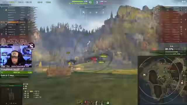 04:17:08Es geht um die Wahl von Panzern. Der EBR wird als Option vorgeschlagen, während der Manticore bereits durchgespielt ist. Der Streamer fährt mit einem mittelmäßigen Scout, dem WZ, und bittet einen Mitspieler namens Randy, als EBR vorzupositionieren. Es folgt eine allgemeine Frage nach den Serverproblemen, die auftreten, und der Streamer erwähnt sein eigenes Auto ohne TÜV. Der Fokus liegt auf der Scouting-Aufgabe, die konstantes Ausharren am Leben erfordert, um auf Fehler der Gegner zu warten.