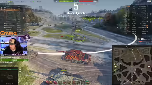 03:02:28Es wird über die unglückliche Situation bei einem 57er Panzer gesprochen, der drei Schüsse erhalten hat. Die Frage ist, wie der Gegner das durchführen konnte, indem er von unten geschossen hat. Ein Spieler mit dem Namen Fxn wird für den erstmaligen Twitch Prime Support erwähnt. Es folgt eine kurze Diskussion über die wahrscheinliche Online-Zugehörigkeit für den nächsten Tag. Anschließend wird ein Leopard erwähnt, der extrem viel Glück hat und trotz Tod noch wild agiert. Der Streamer verlässt kurz den Stream, da er keinen Spot hatte.