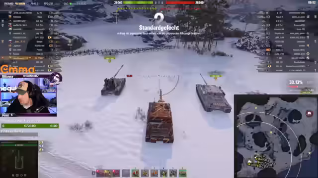 01:20:59Die Spieler setzen ihre Gefechte fort, wobei sie sich über die Leistung ihrer Panzer und die Taktiken der Gegner austauschen. Es kommt zu Frustrationen über das RNG (Zufallsfaktor) im Spiel, insbesondere wenn Schüsse nicht penetrieren oder Gegner unerwartet viel Schaden aushalten. Die Diskussion dreht sich auch um die Effektivität bestimmter Panzer und die Notwendigkeit, strategisch zu spielen, um erfolgreich zu sein. Es wird über die Schwierigkeit gesprochen, bestimmte Gegner auszuschalten, und wie wichtig es ist, die Karte und die Positionen der Verbündeten und Feinde im Auge zu behalten. Die Spieler erleben sowohl Erfolge als auch Rückschläge, wobei die Frustration über verlorene Runden und unglückliche Situationen immer wieder zum Ausdruck kommt. Es wird auch über die WCI-Drops gesprochen und die Frage, ob diese etwas Gutes enthalten.