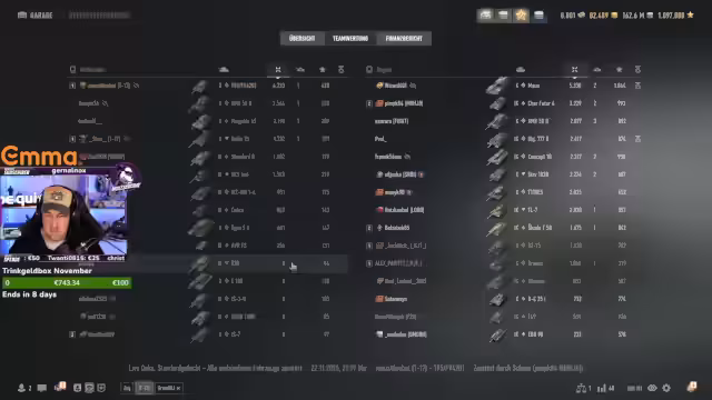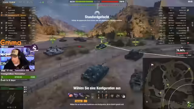 00:00:00Der Stream beginnt mit der Ankündigung, heute den Chieftain und den WZ-113 zu fahren. Es wird auch darauf hingewiesen, dass, falls Stan später dazukommt, die Schädel an der Jäger-Mission abgeschlossen werden soll, wobei noch zwei Tagesmissionen fehlen. Die ersten Runden werden mit dem Chieftain gestartet, wobei die Leistung in einem frühen Gefecht als „unterirdisch“ beschrieben wird, trotz eines Sieges. Es wird über die Schwierigkeiten gesprochen, gegen Tier-11-Gegner anzutreten und wie der Chieftain sich in solchen Situationen anfühlt. Die Diskussion dreht sich auch um die Durchschlagskraft des Chieftain, die mit 311 als zu gering für Tier-10-Gefechte empfunden wird, insbesondere gegen Panzer wie den E100 oder die Taschenratte. Es wird überlegt, den Chieftain mit einem experimentellen Turbo zu spielen, um die Langsamkeit auszugleichen.