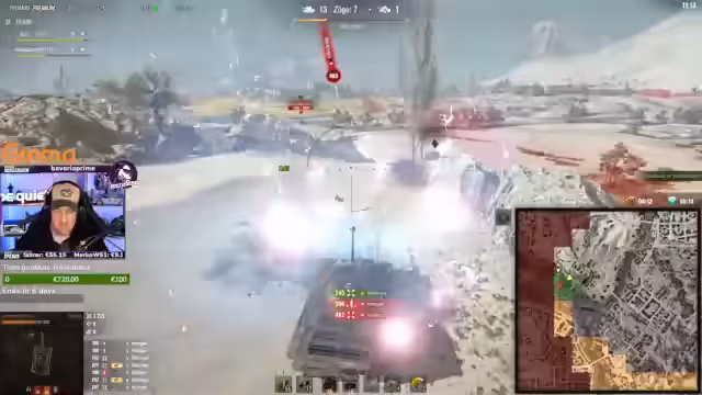 06:35:59Der Streamer erlebt eine Serie von frustrierenden Runden in World of Tanks. Häufig trifft er gegnerische Panzer nicht, während seine Schüsse abprallen oder kaum Schaden anrichten. Er kritisiert sein Team stark, da oft mehrere Mitspieler ohne jeglichen Schaden aus der Runde ausscheiden oder taktische Fehler machen wie das hinten stehen bleiben und nicht flankieren. Besonders verärgert zeigt er sich über Stream-Sniper und Gegner-Artillerie, die ihn permanent fokussieren.