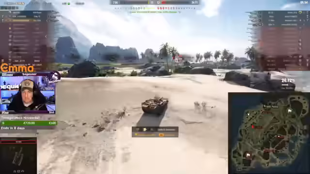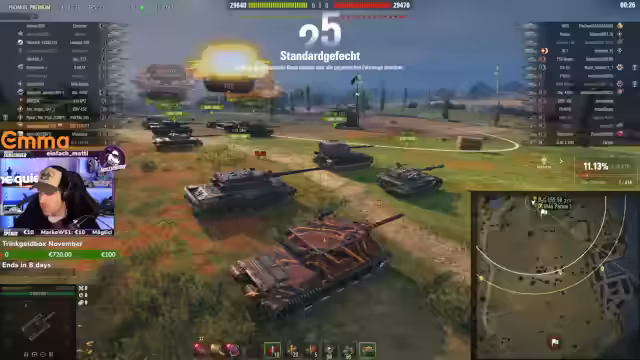 08:07:19Ein neuer Panzer, der 'Krokodilo', erregt Aufmerksamkeit durch sein 'fancy' Aussehen und seine aggressive Spielweise. Die Diskussion dreht sich um die Effektivität dieses Panzers und die Schwierigkeit, gegen Spieler anzutreten, die scheinbar unmögliche 'Pixel-Shots' landen. Die Frustration über präzise Treffer der Gegner aus großer Entfernung, selbst bei minimaler Sichtbarkeit, wird deutlich. Es wird der Vorschlag gemacht, auf einen anderen Panzer zu wechseln, um die Strategie anzupassen und möglicherweise die 'Medium-Flagge' zu spielen, um das gegnerische Team aufzurollen. Die Hoffnung, dass das eigene Team diesmal besser zusammenarbeitet, bleibt bestehen, während die Schwierigkeiten, solche präzisen Schüsse selbst zu landen, thematisiert werden.
