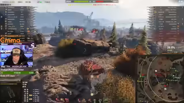 06:15:08Der Streamer gewinnt auf Malinovka und sucht sein Teammitglied Stan, das telefonieren scheint oder eingeschlafen ist. Er ruft Stan an und erklärt, dass Stan durch einen Bot ersetzt wurde, falls er nicht reagiert. Es wird beschrieben, dass Stan eine wichtige Aufgabe hat und dass der Streamer fragt, ob er vorbeigelassen werden kann. Der Streamer ist gespottet und es wird kritisiert, dass viele Gegner sich nicht bewegen, wenn nicht direkt auf sie gezielt wird.