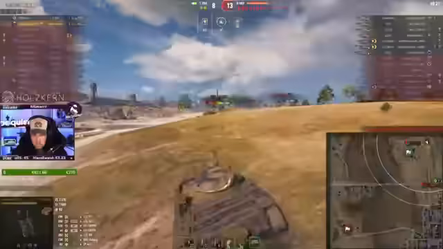 02:11:58In einer späteren Schlachtphase beschreibt der Streamer die schwierige Situation, in der er als Heavy-Panzer mit nur drei leichten Panzern im Team ausgeliefert ist. Er analysiert, dass in dieser Konstellation taktisch fast nichts mehr möglich ist, als darauf zu hoffen, dass die Gegner Fehler machen oder das eigene Team eine geniale Idee entwickelt. Die Runde wird als Beispiel für eine frustrierende Phase genannt, in der man nur passiv agieren kann und aktiv kaum noch Einfluss auf das Geschehen nehmen kann.
