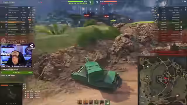 01:51:38Ein Zuschauer wird für seine langjährige Unterstützung belohnt. Es wird diskutiert, warum ein Mitspieler seinen AMX ins Wasser gefahren hat. Im Spielgeschehen wird ein Gegner beobachtet, der einen E5 "snapped", und es wird überlegt, ob man ihm helfen soll, nachdem er umgekippt ist, was jedoch als "nicht cool" bewertet wird. Es folgt eine Diskussion über HE-Munition und deren Einsatz gegen bestimmte Fahrzeuge wie den FV. Es wird festgestellt, dass mehr Spenden für das Beenden des Gesangs eingehen als für das Streamen von World of Tanks, was als "Money Glitch" bezeichnet wird. Die Community äußert ähnliche Gefühle wie der Streamer bezüglich des Spiels. Es wird überlegt, ob es fair ist, mit zwei Stritzmann-Panzern zu spielen, und die Bedeutung aggressiven Spielens mit dem D-Pib wird hervorgehoben. Der Streamer erinnert sich an ein Charity-Event, bei dem deutsche Weihnachtslieder gesungen wurden, und scherzt über seine bereits existierenden Alben.