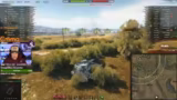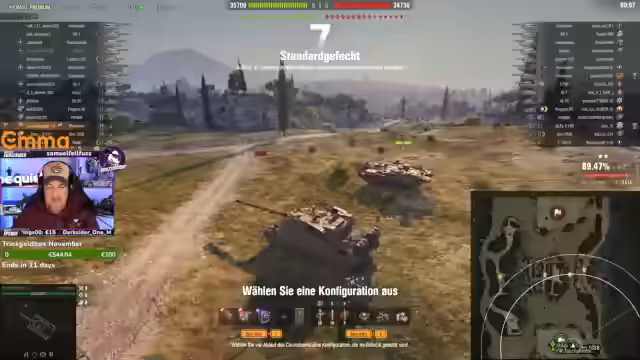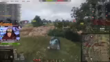 03:01:02Das Gefecht eskaliert. Der Streamer beschreibt kritische Schusswechsel, wobei er bemängelt, dass wichtige Zielpunkte verpasst wurden. Er kommentiert eine missglückte Aktion, bei der ein gegnerischer Panzer 'blind' erschien. Trotzdem gelingt es dem Team, gegnerische Fahrzeuge wie einen 'Minotauro' und einen 'Streuselwagen' auszuschalten, was auf eine straffere Taktik hindeutet.