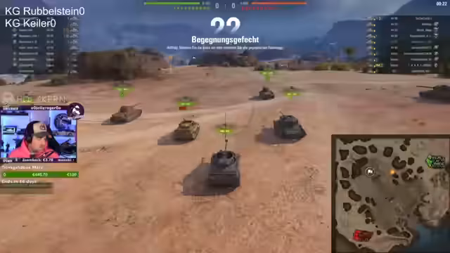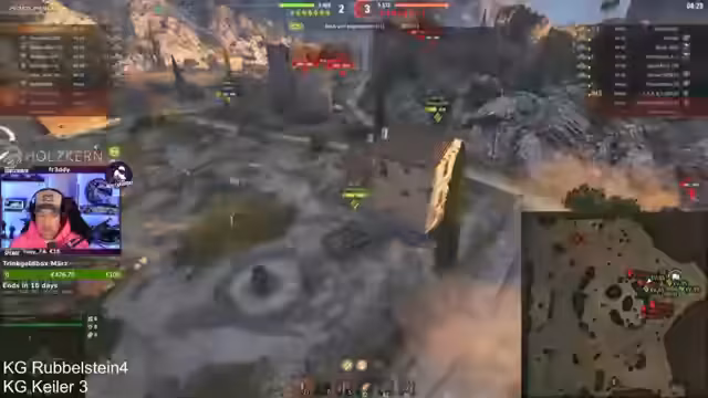 02:40:27Der Stream startet mit dem ersten Spiel auf einer unbenannten Karte. Zwei Teams, Kampfgruppe Keiler und Kampfgruppe Rubbelstein, liefern sich einen taktischen Kampf mit Schwerpunkt auf der Karte. Es kommt zu einem frühen Ausgleich, als Kampfgruppe Rubbelstein knapp den Punkt holt, obwohl sie dem HP-Vorteil von Kampfgruppe Keiler unterlegen waren. Der Kampf war geprägt von aggressiven Moves, Cross-Shots und dem Versuch, den Cap zu verteidigen. Die Hellcats beider Teams spielten eine Schlüsselrolle bei der Flankierung und der Unterstützung.