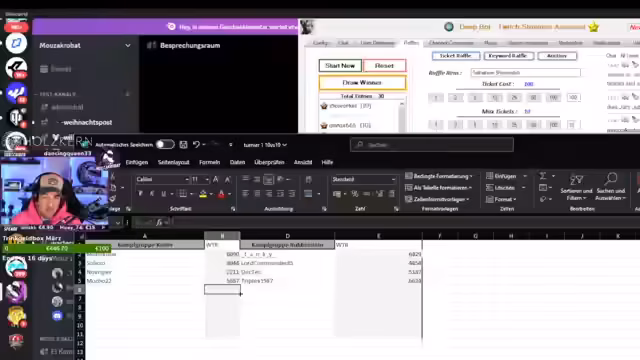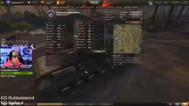 01:46:36Zur geplanten Zeit beginnt die Auslosung von 20 Spielern für das Showmatch zwischen den Teams 'Kampfgruppe Keiler' und 'Kampfgruppe Rubbelstein'. Der Streamer zieht aus den Teilnehmern und fordert deren Ingame-Namen, um sie in den Übungsraum einzuladen. Die ausgewählten Spieler müssen die Vorgaben für die Panzer erfüllen. Nach der Ziehung der 20 Spieler werden diese nach Wertung auf die beiden Teams verteilt, um eine möglichst faire Ausgangslage zu schaffen. Der Prozess gestaltet sich aufgrund von fehlenden Teilnehmern und technischen Schwierigkeiten langwierig.