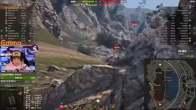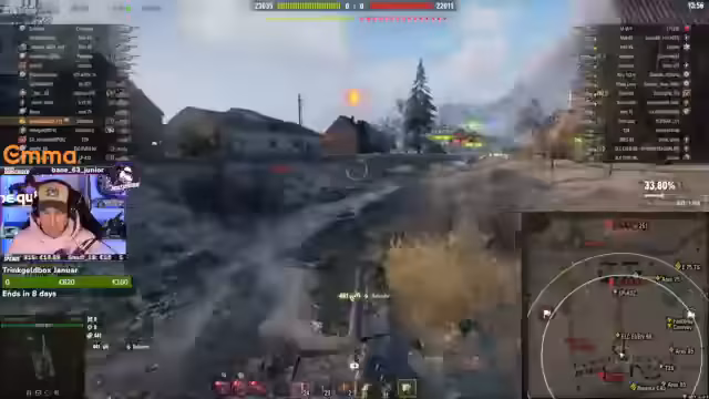 03:19:30Der Stream erreicht einen Höhepunkt, als der Streamer in mehreren aufeinanderfolgenden Runden intensiv kämpft und versucht, mit einem Team gegen eine überlegene feindliche Stellung vorzugehen. Es kommt zu dynamischen Schusswechseln und strategischen Manövern. Gleichzeitig erreicht die Panzerwunsch-Verlosung ihren Höhepunkt, als Jörg für 20 verschenkte Subs eine große Aufmerksamkeit im Chat erhält und sich ein Fahrzeug wünscht. Diese Kombination aus Action und interaktiver Belohnung schafft einen unterhaltsamen Höhepunkt.