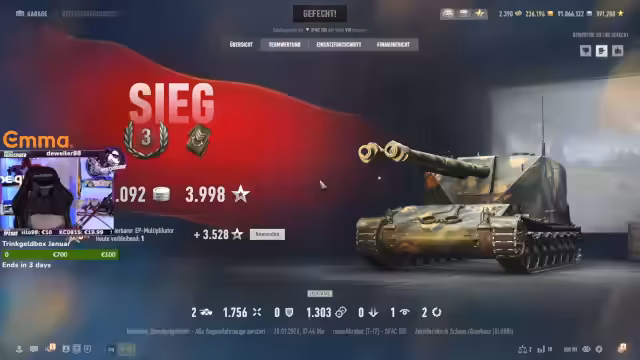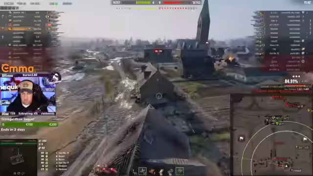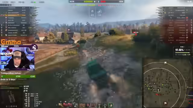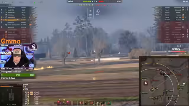 00:03:02Zu Beginn des Streams werden verschiedene Zuschauernamen gegrüßt und Feedback zur Spielmechanik von World of Tanks geteilt. Ein Spieler thematisiert das aktuelle Matchmaking bei Tier 8, welches oft höhere Tierstufen gegeneinander platziert. Der Streamer spekuliert über zukünftige Panzer im Spiel, wie die mögliche Rückkehr von Waffenträgern auf der Ehre 100 und die Einführung von historischen oder lange nicht gespielten Fahrzeugen wie dem E25 oder KPZ EK1.