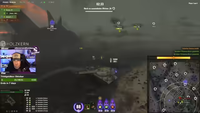 00:08:08Der Fokus des Streams liegt auf dem Gameplay in World of Tanks. Es werden verschiedene Panzer wie der Heavy, Grenadier und Leopard gefahren. Der Streamer betont die Notwendigkeit von guter Teamzusammenarbeit, strategischem Vorgehen und dem Sammeln von Punkten. Häufige Themen sind das Pushen, das sichere Positionieren und die Abwehr von Gegnern, insbesondere von Spähern und Artillerie.