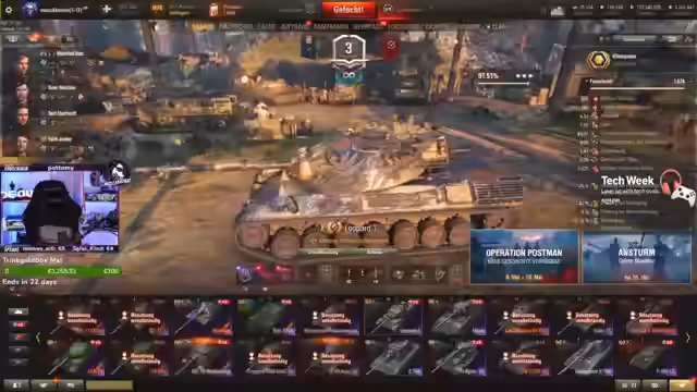 00:00:00Der Stream begrüßt die Zuschauer und stellt den traditionellen Panzerwunsch-Stream ins Wochenende vor. Gewinner des Gaming-PC-Giveaways vom Geburtstag-Stream werden am Sonntag erwartet. Der Fokus liegt auf dem Erledigen von Missionen wie Operation Postman und fünf, um Credits, Premium-Spielzeit und Anleihen zu sammeln. Streamer und Zuschauer werden persönlich angesprochen und die Runde beginnt mit dem Panzerwunsch.