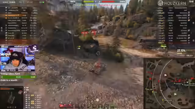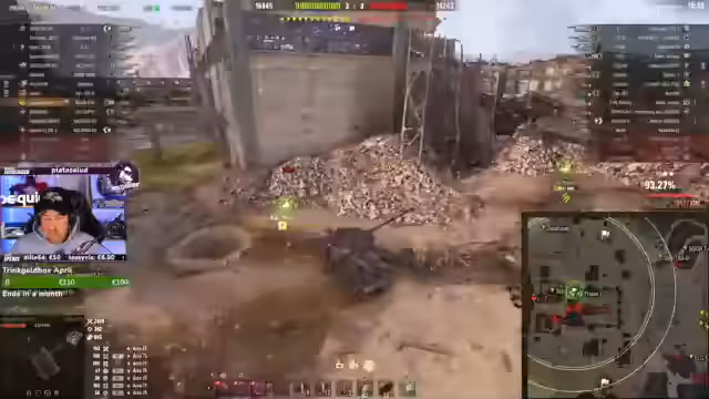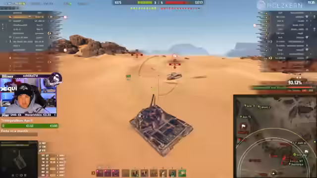 03:21:47Der Fokus liegt auf dem Spielgeschehen, speziell mit dem schweren Panzer 113 BO. Es finden mehrere taktische Manöver und Gefechte statt, bei denen der Streamer sein Team koordiniert und Schusswechsel mit gegnerischen Panzern, wie dem Leopard, austrägt. Es werden strategische Entscheidungen getroffen, wie zum Beispiel die Unterstützung von Teammitgliedern und das Fokussieren auf bestimmte Gegner, um das Gefecht zu gewinnen.