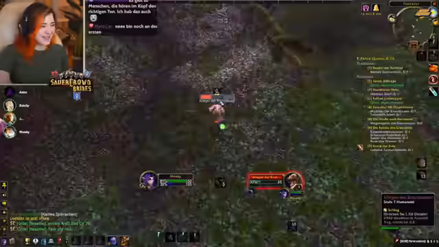 06:52:15Der Streamer kündigt ein wichtiges Event an, das mit dem Sauerkraut-Hashtag beworben wird. Es gibt Diskussionen über unfaire Mechaniken wie das Taggen von Mobs und Vergleiche zwischen Classic und Retail World of Warcraft. Persönliche Enttäuschung wird geäußert, als eine geplante Spielzeit mit Lara ausfällt. Die zockenden Communitymitglieder beraten über Level-Gebiete und Quest-Hindernisse.