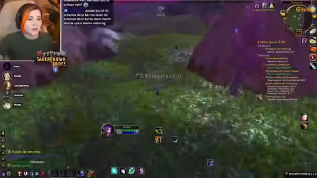 08:24:26Es werden persönliche Begrüßungen und Spitznamen wie Ralf ausgetauscht. Die Mission in Moonglade wird zum zentralen Thema, bei der der Streamer den Samen des Leben für die Nachtelfen-Hochburg abliefern muss, was auf viel Widerstand stößt. Bestechungsversuche mit Zwölfer-Taschen scheitern. Der World Buff in Sturmwindgras wird erwähnt und die Treue eines Zuschauers namens Mawki hervorgehoben. Die Ankunft des Gildenführers Mauki wird gefeiert, der sich für den Streamer als Nachtelfenführerin eingesetzt hat.