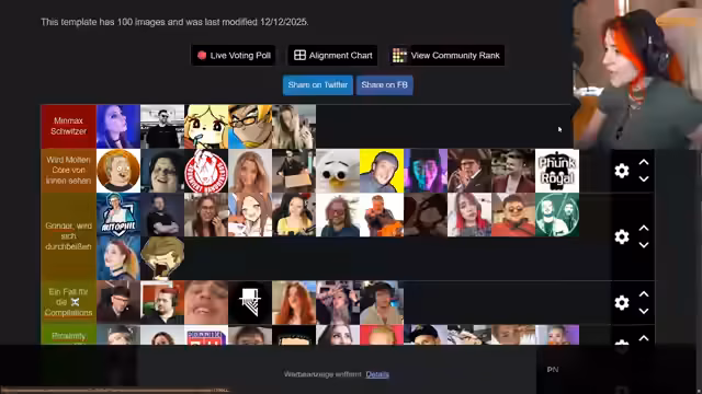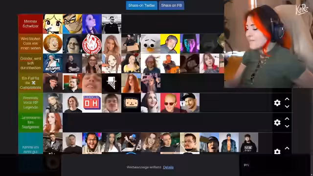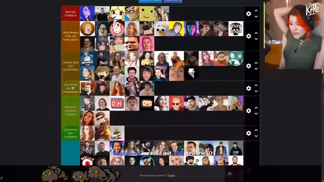 01:37:54Als Vorbereitung für das am 27. beginnende Event wird eine gemeinsame Tierliste angekündigt. Mehrere Veranstalter wie Kutscha, Hanno und Vlesk haben bereits ähnliche Listen erstellt. Die Teilnahme am Event selbst ist bereits geschlossen, da das Teilnehmerfeld voll ist. Die Tierliste ist jedoch für alle offen nutzbar, etwa über 'Tierlist Maker'. Der Stream zeigt erste unbekannte Teilnehmer in der Liste.