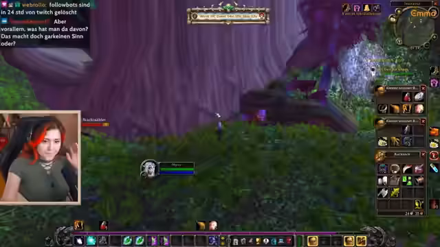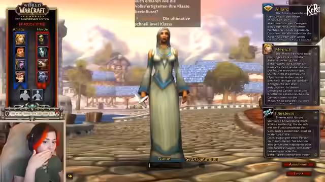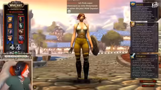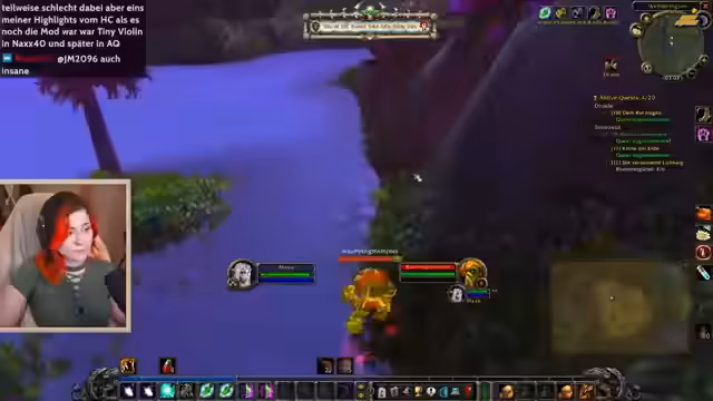 13:13:24Die Streamerin teilt private Erinnerungen: Sie spielte auf dem Server Krack-Gin (auch Krakdjin genannt), wo sie mit ihrem Ex-Freund die Gilde 'Feuchtgebiete' gründete und als Raid-Leiterin aktiv war. Wegen Griefing durch den Ex wechselte sie später auf einen Zul'-Server. Sie erwähnt eine Fernbeziehung während der WoW-Zeit und dass sie ihren Druiden 'Miau' nach einer streichelnden Katze benannte. Als besonderen Server nennt sie 'Dunkles Herz' (gegründet 2007 auf Krack-Gin), dessen Name in einem Quiz von Zuschauern identifiziert wurde. Diese Anekdoten unterstreichen die emotionale Bindung an Classic-Servers.