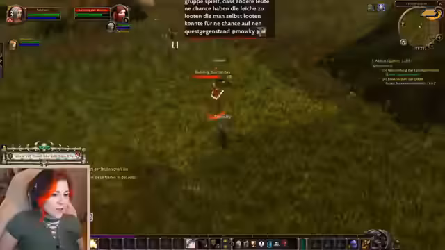 07:12:07Wichtige Gameplay-Mechaniken werden erklärt. Im sitzenden Zustand ist ein Charakter verwundbarer und erhält mehr Schaden, da Angriffe automatisch kritisch treffen. Deswegen sollte man sofort aufstehen, wenn ein Mob naht. Ein weiteres Problem am Anfang eines Events, wenn alle gleichzeitig starten, ist die Konkurrenz um Questziele. Hier kann man ein Ziel mit einem Sofortzauber taggen, auch aus der Ferne, um es als eigenes zu markieren und so die Konkurrenz zu umgehen, da jeder Schaden, der zuerst gemacht wird, das Ziel für einen sichert.