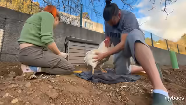 01:26:03Die Kommunikation mit dem verletzten Hahn wird als schwierig beschrieben, da seine Sprache noch nicht verstanden wird. Man vermutet, dass sein Verhalten auf Dominanzgebärden zurückzuführen ist. Gleichzeitig gibt es Bedenken bezüglich der Bewegungsfreiheit, da der Hahn den gesamten Bereich mit seinen Exkrementen verschmutzt und eine Belüftung des Geheges nötig ist. Eine nachhaltige Lösung wie der Bau eines Hühnerhauses wird geplant.