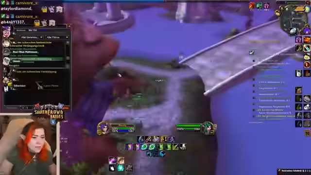 07:30:41Während des Fluges nach Stormwind werden Grüße von der 'Sauerkraut'-Community übermittelt, die ebenfalls an dem Projekt teilnehmen und eine eigene Gilde besitzen. Die Größe der Gilde ist beeindruckend, mit über 300 Mitgliedern. Gleichzeitig meldet der Streamer technische Probleme mit seinem Mikrofon, das alle fünf Minuten ausfällt, was ihn zu einem Neustart des Streamings zwingt und ihn kurzzeitig aus dem Spiel unterbricht.