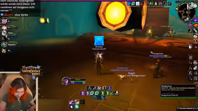 06:05:10Der Stream beginnt mit einer Beschwerde über die ständige Beschäftigung mit Buffen und den unfreiwilligen Abbau von Aggro, was den Gameplay-Flow unterbricht. Der Streamer sucht nach einer Möglichkeit, den Innere Buff (int) erneut zu aktivieren, und äußert Neid auf den Loot in einem anderen Dungeon (Salty). Es wird das Fehlen von Drops in der aktuellen Instanz beklagt, was zu Frustration führt, da Gegner vermehrt auf den Streamer zulaufen.