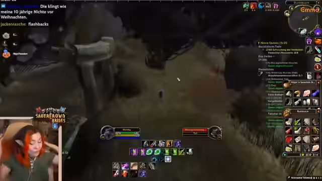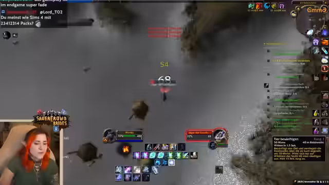 12:01:57Der Streamer interagiert stark mit seinen Zuschauern, beantwortet Fragen und diskutiert Spielmechaniken. Es kommt zu einem interessanten Todesfall, bei dem eine Spielerin im Verlies Deadmines einen Handel tätigt, den Schaden aber nicht sieht und stirbt. Dies führt zu Diskussionen über Spiel-Bugs und Add-ons. Zudem wird über die teure Kosten von Skill-Resets in Classic Hardcore gesprochen und eine enge Freundschaft zwischen Zuschauern erwähnt, die wie in alten Teamspeak-Zeiten zusammenhängen.