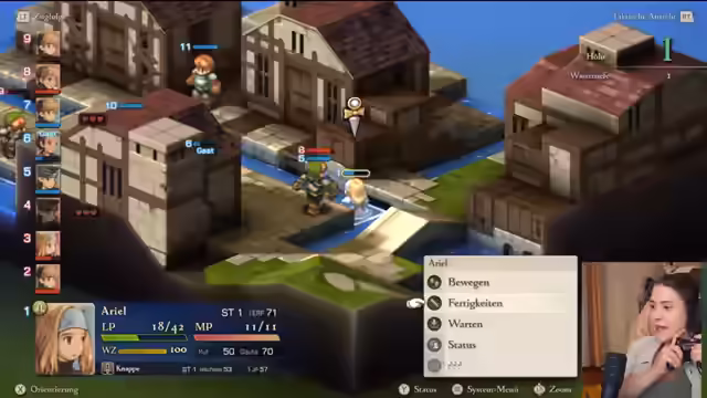 03:07:32Es wird auf die Ereignisse vor dem Ausbruch des Krieges eingegangen und die Unruhen in Ivelisse thematisiert. Die Ankunft von Duke Larg und Marquas Elmdor de Limbri in Gareland wird erwähnt. Es wird die Schwierigkeit betont, mit den vielen Namen und Orten in der Lore zurechtzukommen, wenn man sie nicht kennt. Es wird die Möglichkeit erwähnt, während des Spiels zu googeln, um mehr Informationen zu erhalten. Es wird die Truppenaufstellung vor einem Kampf erklärt, wobei die Platzierung der verbündeten Einheiten auf dem Feld entscheidend ist. Die taktische Ansicht wird vorgestellt. Die verschiedenen Einheiten, wie Knappen und Chemikus, werden platziert. Es wird auf die Statuswerte der Einheiten geachtet. Es wird die Wichtigkeit betont, den Einheiten im Kampf zu helfen, um zu verhindern, dass sie zu schnell besiegt werden. Die Fertigkeiten der Einheiten werden erklärt, und es wird gezeigt, wie man die Wirkungsprognose nutzt, um die Auswirkungen der Fertigkeiten auf die Ziele zu sehen.