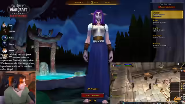 12:14:44Der Stream beginnt mit einem Quiz über World of Warcraft Bossnamen im geschmolzenen Kern. Der Streamer testet das Chatwissen mit Fragen zu Bossen wie Luzifron, Gehennas und Gare. Dabei werden teilweise die Namen verwechselt und eine kurze, lebhafte Diskussion über die korrekten Bezeichnungen entbrennt. Kurz darauf kommt es zu einem technischen Problem, bei dem Discord ausfällt und eine alternative Kommunikation per TeamSpeak in Erwägung gezogen wird. Es werden auch Diskussionen über ein spezielles Tool zur Überwachung von Gildenmitgliedern und deren Leveln geführt, das den Streamern Live-Statistiken zum Sauerkraut-Event anzeigt.