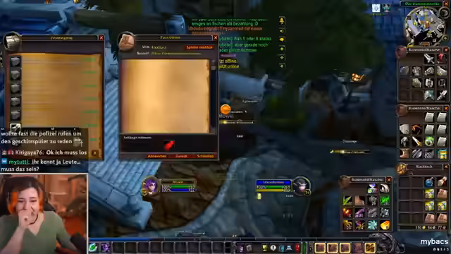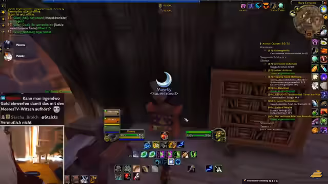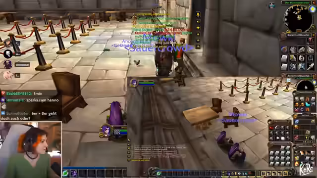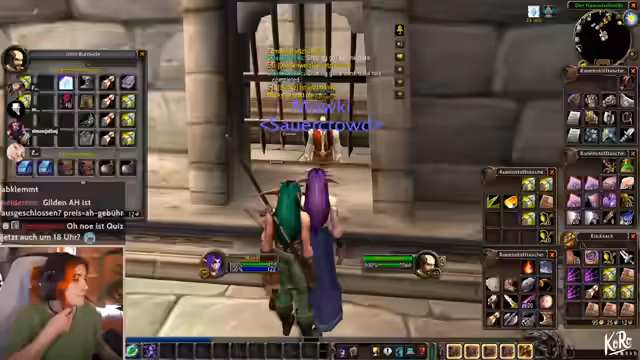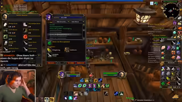 10:08:32Zu Beginn des Stream-Ausschnitts wird der Streamer durch geschäftliche Angelegenheiten unterbrochen, die ihn kurzzeitig vom Spiel ablenken. Er erklärt, dass er gerade von einem Ort zum anderen reist und dabei wichtige Aufgaben, wie den Erwerb eines Helms, erledigen muss. Danach wendet er sich einem drängenden Thema in seinem World of Warcraft-Guild zu: die Organisation der Gildenbank. Er diskutiert intensiv über die Einführung separater Banken für verschiedene Materialklassen, wie Leder und Stoff, um die Verwaltung zu optimieren und mehr Ordnung in die Lagerung von Rezepten und Ausrüstungsgegenständen zu bringen.