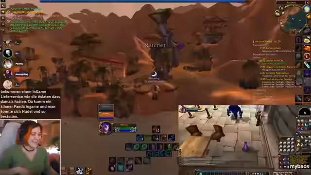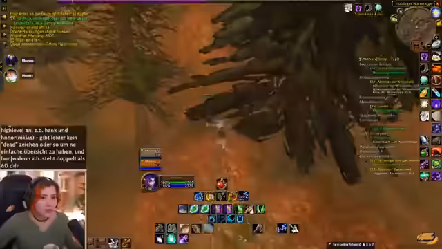07:13:11Die Spieler begeben sich in die Zone Silithus, wo sie auf einen seltenen Skorpion stoßen, der eine epische Ausrüstung droppt. Parallel dazu wird über ein Housing-Event in Berlin gesprochen, bei dem Prominente wie Mitashi, Hanifu, Rumatra und Kamuy eingeladen sind, die jeweils eigene Beziehungen zum Spiel haben. Es wird über Romatras Furcht vor dem Tod in Dungeons und sein Ausloggen für den Raid gelacht.
