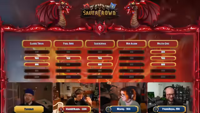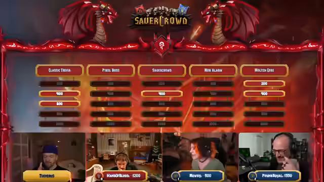 11:30:04Eine neue Kategorie namens Pixel Boss wird eingeführt, bei der ein verpixeltes Bild eines Bosses langsam aufgedeckt wird. Gleichzeitig läuft eine Mob-Alarm-Runde, bei der die Teilnehmer versuchen, einen bestimmten Mob anhand seines Sounds zu identifizieren. Beide Runden erfordern genaues Wissen über das Spiel und führen zu abwechslungsreichen und teils kniffligen Aufgaben für die Teilnehmer.
