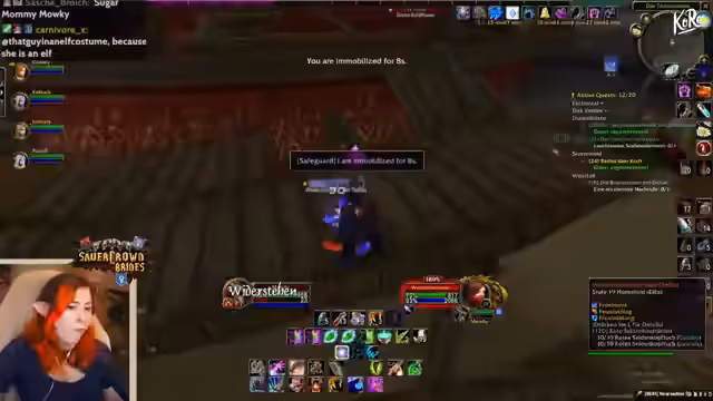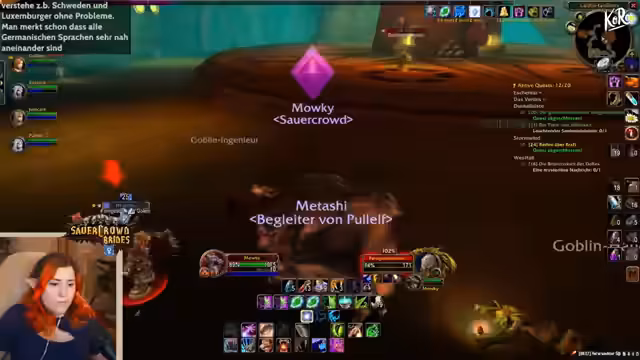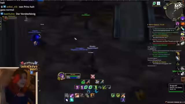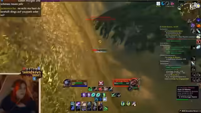 12:35:39Die Gruppe erlebt eine Reihe chaotischer Momente im Spiel. Axel stirbt unerwartet, was zu Reaktionen wie 'Schild war keine Brücke' führt. Währenddessen gerät Radler in eine gefährliche Situation in Duskwood, die den Streamer dazu veranlasst, die Gruppe aufzufordern, sich in Sicherheit zu begeben. Es kommt zu Verwirrung bei der Lokalisierung von Questgegnern und zum Überleben in einem Gebiet, das als sicher galt, aber plötzlich gefährlich wird.