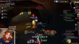 01:42:44Während des Streams treten mehrere technische Probleme auf. Ein Bug in Stormwind führt dazu, dass der Charakter durch die Welt fallen kann, was sich nur als optischer Fehler herausstellt. Später in einem Dungeon kommt es zu einer angespannten Situation, als ein Spieler einen schwierigen Moment erlebt und kurzfristig stirbt. Nach diesem Vorfall wird eine Pause eingelegt, um Getränke zu holen und sich neu zu organisieren, bevor der Dungeon weitergespielt wird.