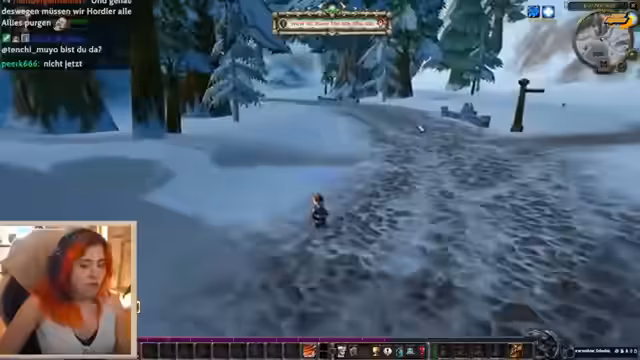 03:00:55Während sie ihren Weg sucht, trifft der Streamer auf andere Spieler in der Nähe von Dolanaar. Sie interagiert erfolglos mit einem Spieler namens Kalle, der sie ignoriert. Die Kommunikation über das Proximity-Voice-Add-on scheint fehlerhaft zu sein. Der Streamer ist frustriert über die Situation, findet schließlich den Ausgang und ist bereit, von einem Baum zu springen, um den Prozess abzuschließen und ihre Zwergen-Jägerin zu starten.