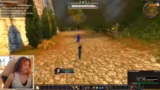 02:57:17Nun, da sie sich entschieden hat, als Zwerg weiterzumachen, muss der Streamer ihren Weg zum 'Loch der Wiedergeburt' finden, um ihren neuen Charakter zu erschaffen. Sie ist in der Stadt Darnassus gelandet und ist verwirrt über das komplexe Layout des Startgebiets, das als riesiger Baum dargestellt wird. Sie sucht nach einem Ausgang oder einem Weg nach unten, um ihren 'Tod' und damit ihr 'neues Leben' zu vollziehen.