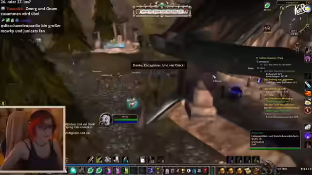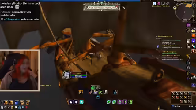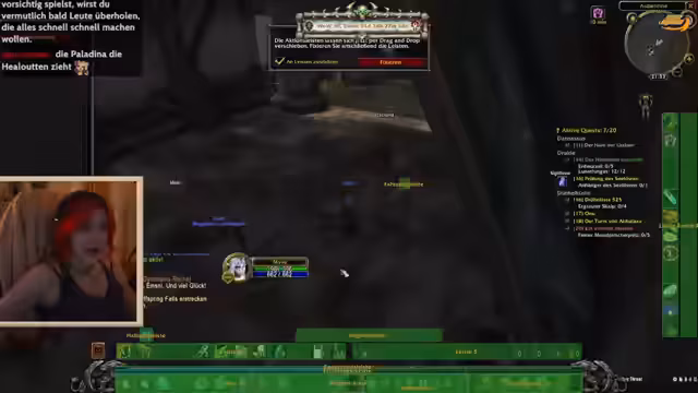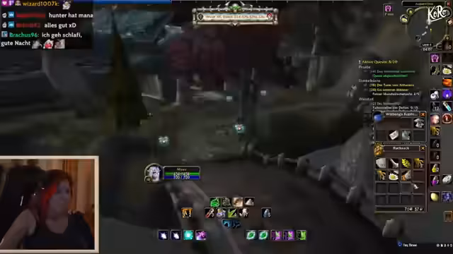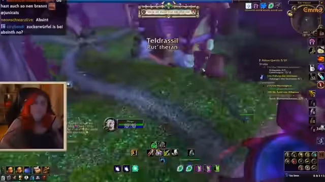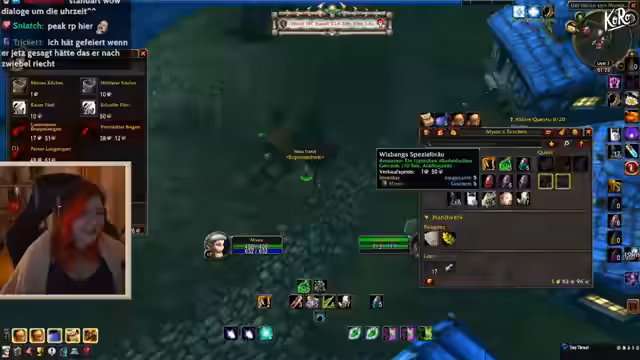 07:36:47Nach einer Pause kehrt der Fokus zurück zum Spiel. Der Streamer erledigt Quests, bemerkt eine gelbe Markierung an seiner Waffe und stellt fest, dass seine Waffe repariert werden muss. Er interagiert mit dem Chat über Mechaniken, wie man beim Händler repariert, und zeigt sich frustriert über wiederkehrende technische Fragen. Gleichzeitig äußert er Freude über das Abschließen von Quests und präsentiert seine Beute, während er auf die anstehenden Server-Events für das WoW-Event vorbereitet.