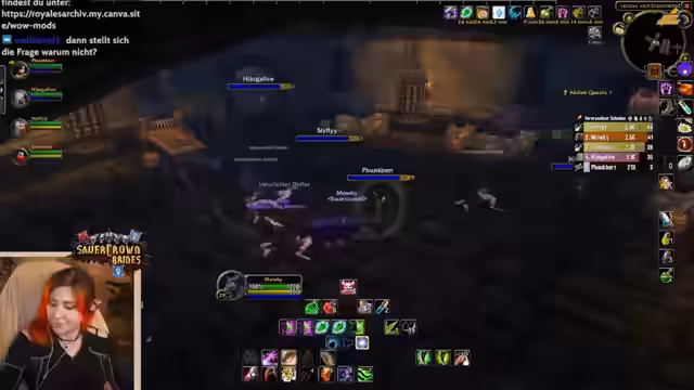 09:45:44Während des Kampfes in der Instanz ist die Kommunikation unter den Spielern ein zentrales Thema. Der Streamer stellt fest, dass ein Mitglied der Gruppe nicht die 'Memo' mitbekommt und versucht daher, ihm durch Anweisungen und Sprechblasen zu helfen. Es wird ein 'crazy' Moment geschildert, in dem jemand den Streamer fälschlicherweise für einen Gegner hielt. Die Gruppe arbeitet daran, ihre Taktik zu verbessern und nennt spezielle Calls. Der Streamer betont auch die Verwendung von bestimmten Addons wie 'Scorps', um die Performance zu verbessern, und lobt den Damage-Output der Gruppe als 'clean' und 'voll geil'.