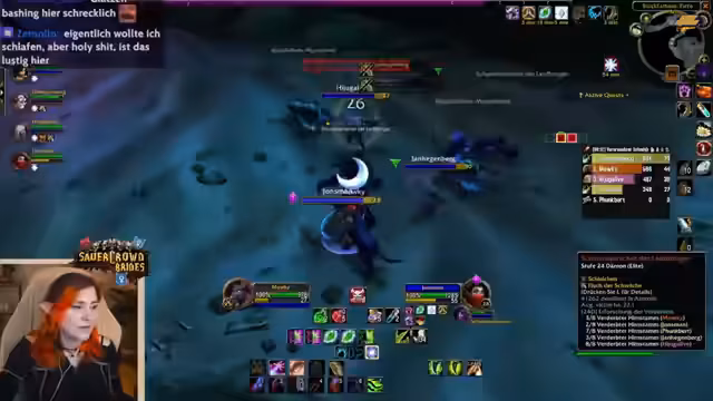 06:01:04Nachdem der Streamer sich erfolgreich im Spiel zu seiner Gruppe, bestehend aus Johnsman und Jan Hegenberg, verbunden hat, beginnt die Vorbereitung auf einen gemeinsamen Dungeon namens Black Fathom Deeps. Es werden Quests geteilt und die Strategie besprochen, um den Dungeon effektiv zu meistern. Der Streamer plant, während des Wartens auf den Start des Dungeons schnell eine weitere Quest abzuholen. Die Stimmung ist entspannt und humorvoll, wobei die Gruppe sich darauf fokussiert, die Aufgaben systematisch abzuarbeiten und so Loot und Erfahrung zu sammeln.
