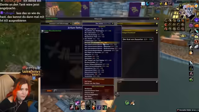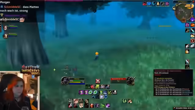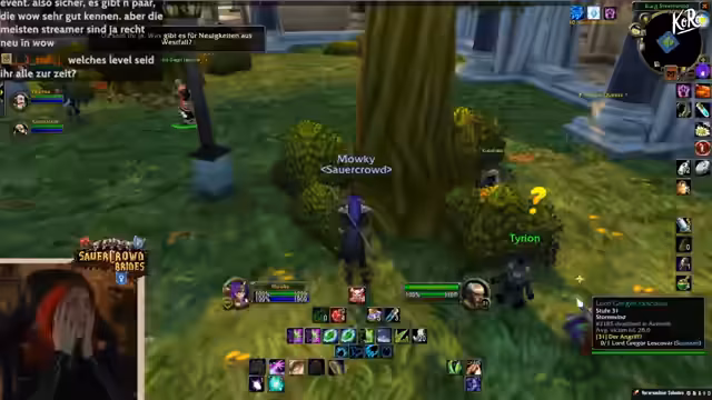 09:30:03Nach der Erkundung konzentriert sich der Streamer wieder auf die Quests. Er freut sich über den Level-Up zu Leder 28 und stellt eine Frage zur Funktionsweise des Ruhesteins. Der Hauptfokus liegt jedoch auf der bevorstehenden Instanz 'Verlies'. Der Streamer bittet die Chat-Mitglieder, ihm bei Pala-Quests zu helfen, an denen er zuvor gescheitert war. Die Gruppe koordiniert die Taktik, wobei sich der Streamer als Tank positioniert. Es werden technische Aspekte wie das Addon 'Scorps' für kritische Treffer besprochen und verschiedene Gameplay-Strategien analysiert, um den Erfolg im Verlies sicherzustellen.
