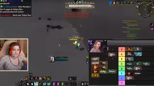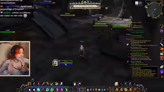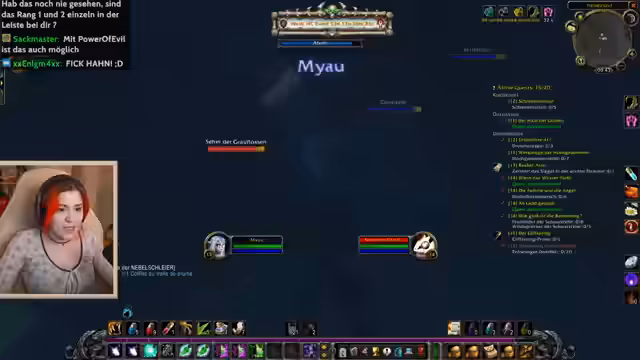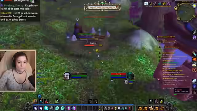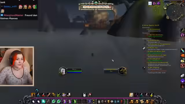 09:15:27Nachdem sein Krieger in World of Warcraft gestorben ist, wird der Streamer von einer Spielerin namens Minus Elf angeflüstert, um zusammen zu questen. Er lädt sie in seine Gruppe ein, wobei beide versehentlich in derselben Höhle 'layern'. Durch einen Fehler stirbt Minus Elf und der Streamer fühlt sich schlecht. Später stellt sich heraus, dass der ganze Streit ein von einem Chat-User namens Han inszenierter Scherz war, was den Streamer verärgert und sein Vertrauen in die Community erschüttert.