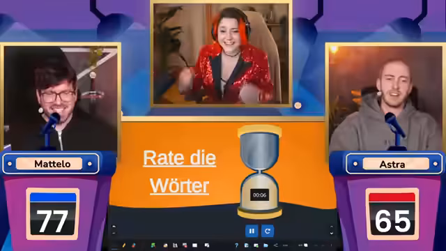 07:31:51Maoki übernimmt die Pantomime-Rolle und muss Begriffe wie 'Mami' und 'Rauhfasertapete' darstellen, während Asta sie errät. Trotz zweier Minuten Zeit und strenger Regeln, die Beschwerden bestrafen, entstehen komische Momente, da oft missverständliche Gesten verwendet werden. Am Ende gewinnt Matteo mit 13 Punkten gegen Asta, der 11 Punkte erzielt.