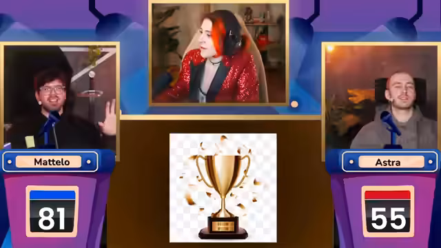 07:39:22Matteo wird als Gewinner mit einem digitalen Pokal ausgezeichnet. Enthüllt wird eine Vorgeschichte: Asta hatte früher einen 'Fluch' ausgesprochen, der Matteo zu Niederlagen in Quizshows verdammen sollte. Dieser Sieg bricht laut Streamer den Fluch, was mit theatralischen Verwünschungen und symbolischen Pokal-Berührungen kommentiert wird. Die Runde endet mit Weihnachtsgrüßen der Teilnehmer.