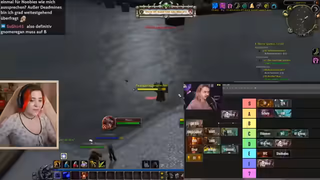 07:46:40Nach dem Spiel wechselt der Stream zu WoW, wo Instanzen wie Blackfathom Deeps (BFD) und Deadmines bewertet werden. BFD wird für seine Lore und Herausforderungen gelobt, aber als überrated eingestuft. Deadmines wird für schnelle Runs und Farm-Möglichkeiten diskutiert, während Maraudon für seine Abwechslung und den wertvollen Loot (z. B. 'Klinge der ewigen Dunkelheit') gepriesen wird.
