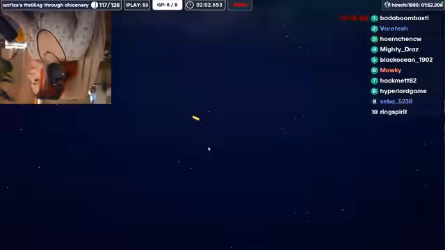 01:53:59Flatvine erreicht überraschend Platz 1 vor Theomir Gief und Hyperlord Game. Das Gewinnspiel wird angekündigt: Der Sieger darf den Desktop des Streamers für eine Woche designen. Die Teilnehmer starten in eine verwirrende Map, die der Streamer als surreal beschreibt. Nach einem Countdown beginnt das Rennen, das durch unklare Navigation und viele Tode geprägt ist. Chibi Maus führt zunächst, wird aber kurz vor dem Ziel von Waldwildeber überholt.